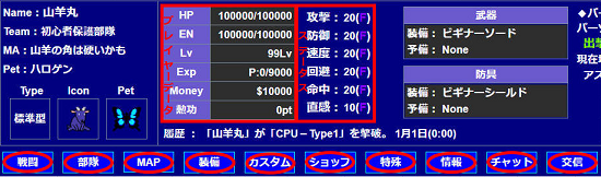 ゲーム内では、プレイヤーにステータスが設定されています。