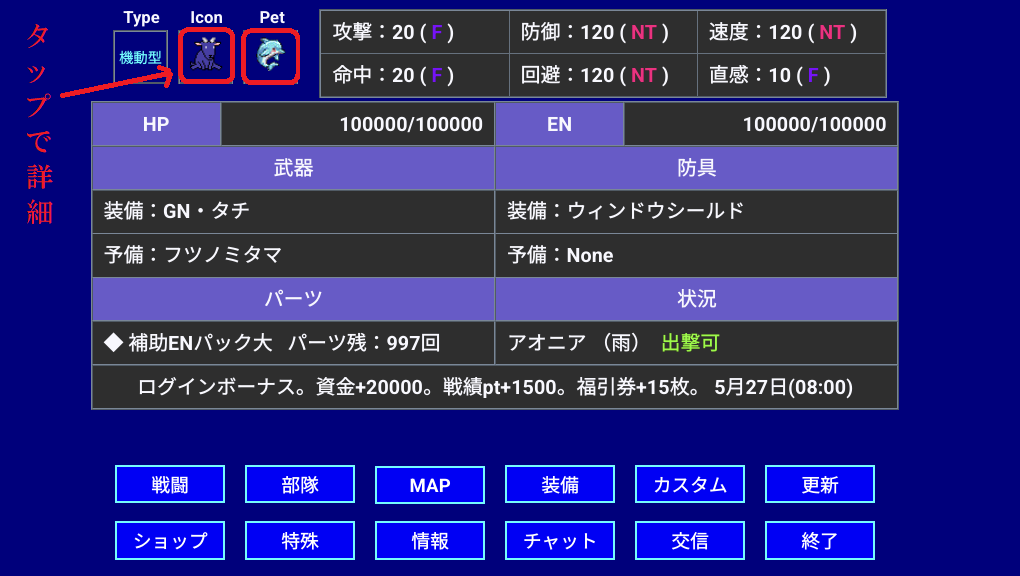 この際ペットステータスは武器特性、予備武器換装には影響しません。
